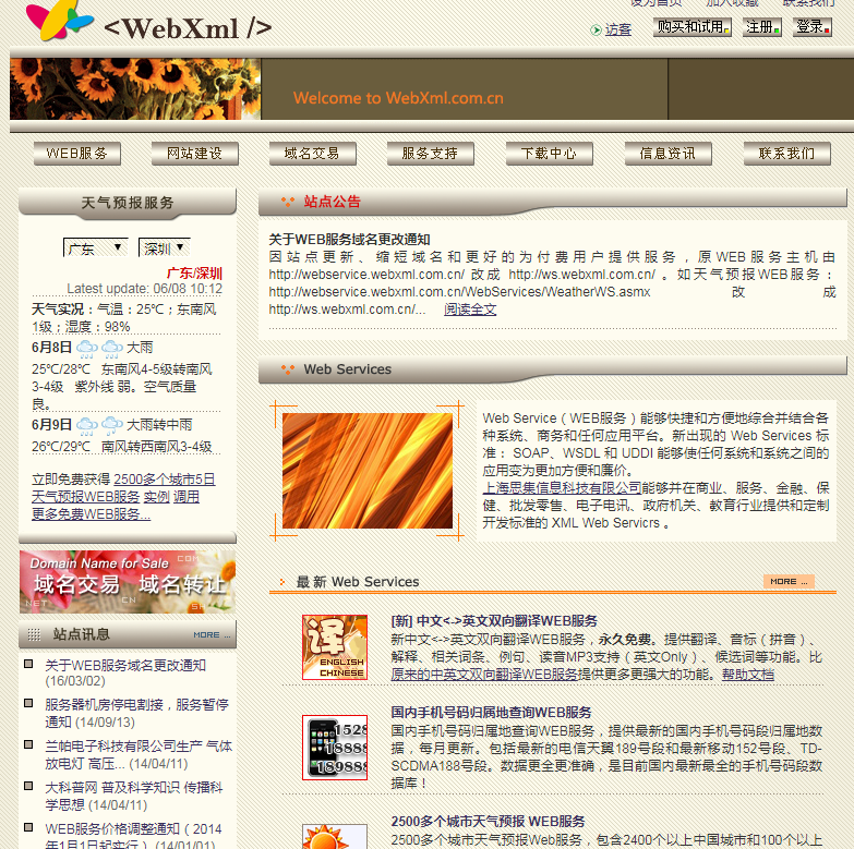例如WebService接口地址:http://www.webxml.com.cn/zh_cn/web_services.aspx