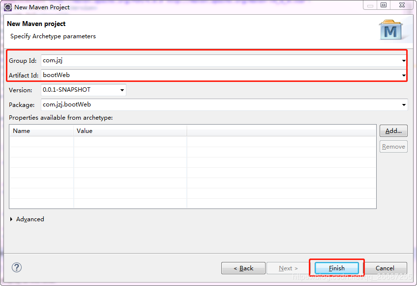 输入Group Id和Artifact Id,然后Finish