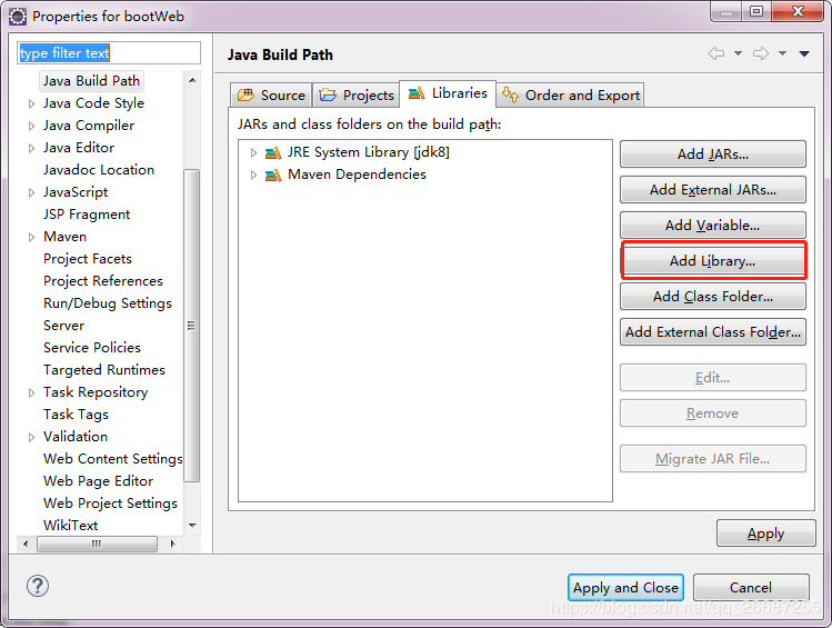 选择Add Add Library,加上tomact运行环境