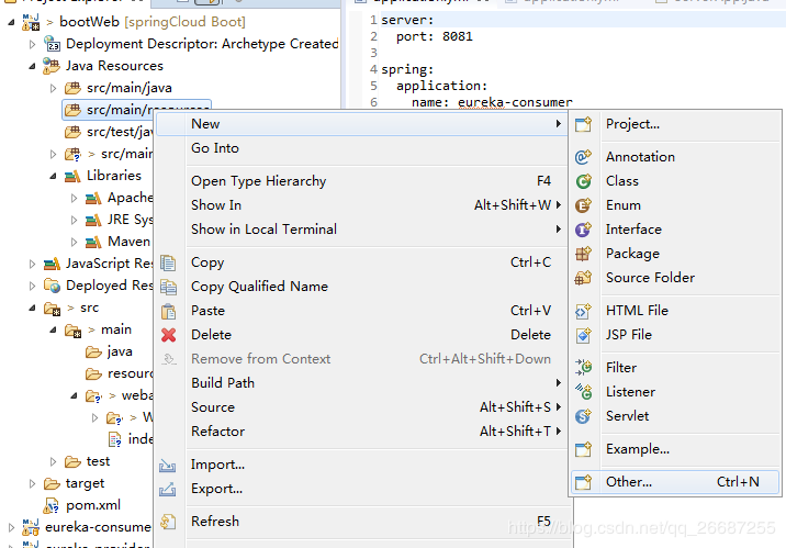 新建配置文件 application.yml 右键src/main/resources New-Other-File