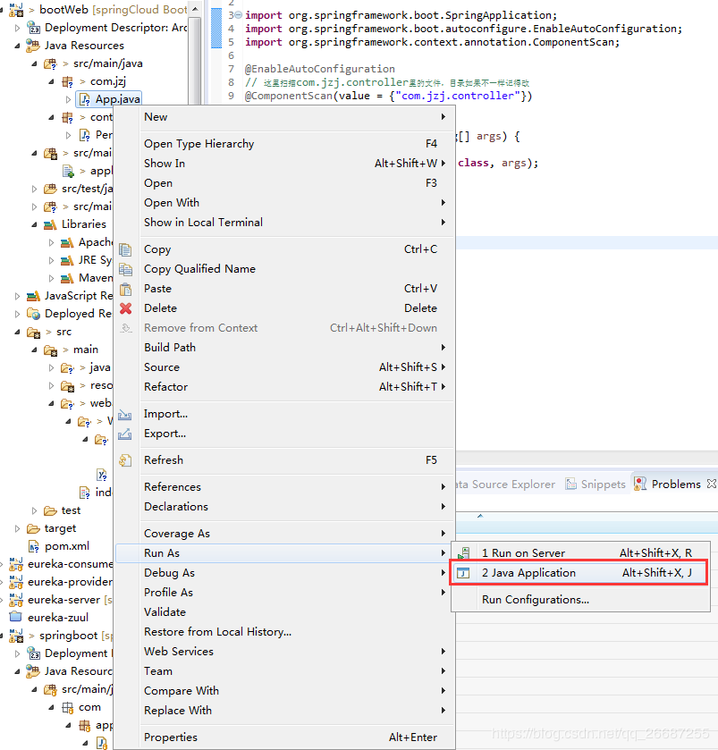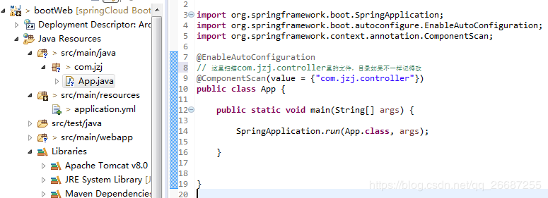 我这里统一建在com.jzj包下,先创建com.jzj包,创建启动类App.java