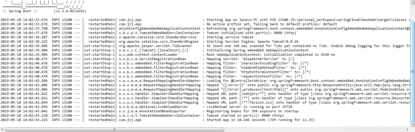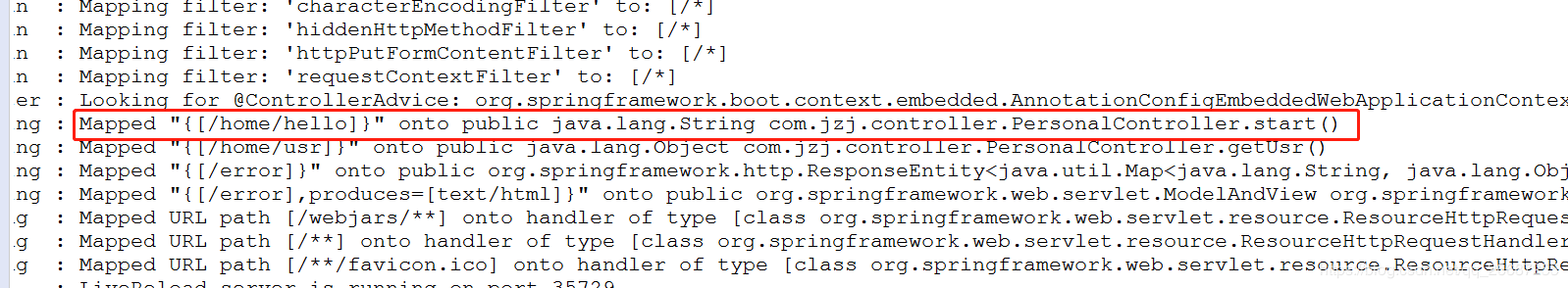 2、所以,项目启动时就已经将/home/hello加载了,日志可以看到