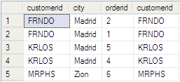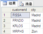先建表一([dbo].[Customers] 字段说明:customerid -- 消费者id , city -- 所在城市):