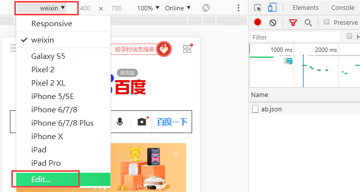 处理方法:直接模拟UA访问,chrome内置了这个功能。