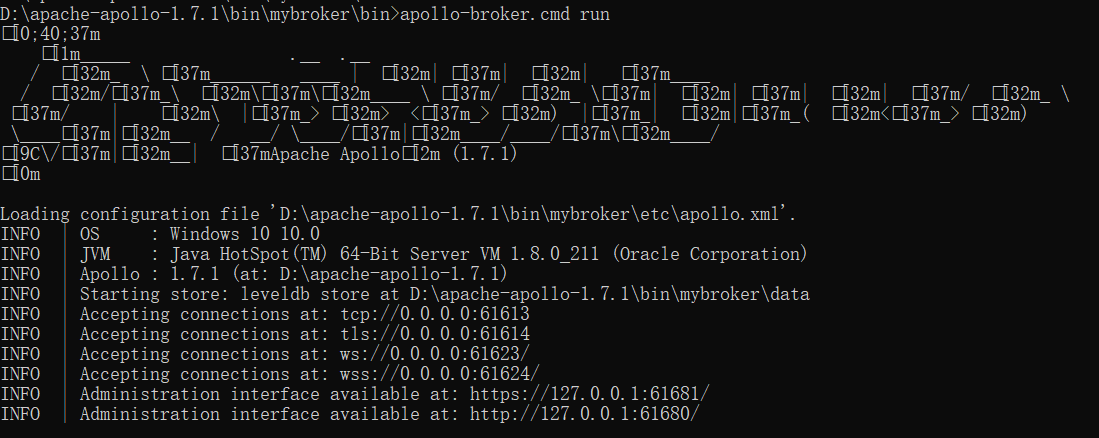 3、解压 Apollo,cmd 进入 apache-apollo-1.7.1\bin 目录