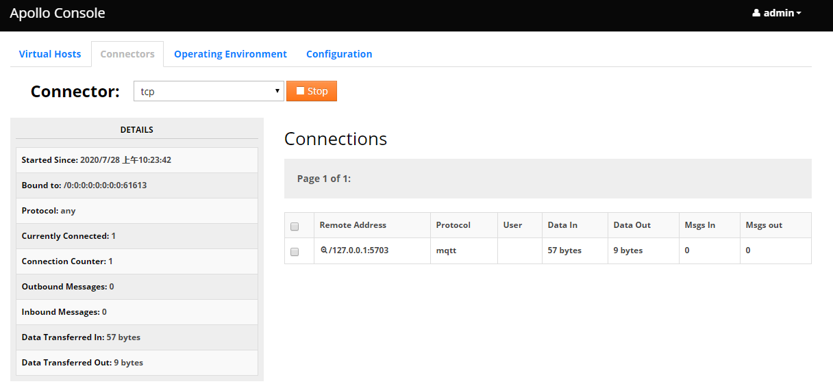 登录服务器后,如果MQTT服务器有客户端连接,后台会显示如下: