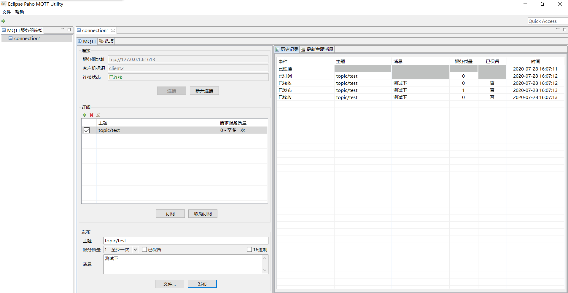 2、MQTT测试工具,点击下载:MQTT测试工具