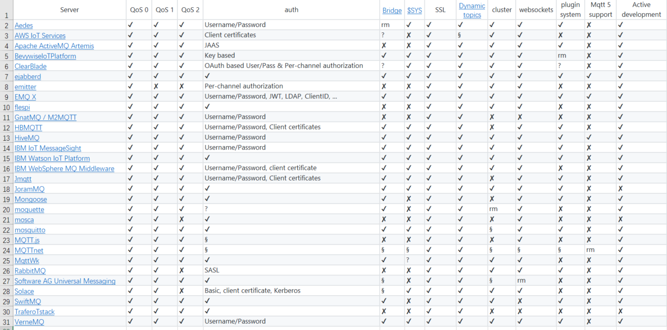 MQTT服务软件列表,下图来源:https://github.com/mqtt/mqtt.github.io/wiki/server-support