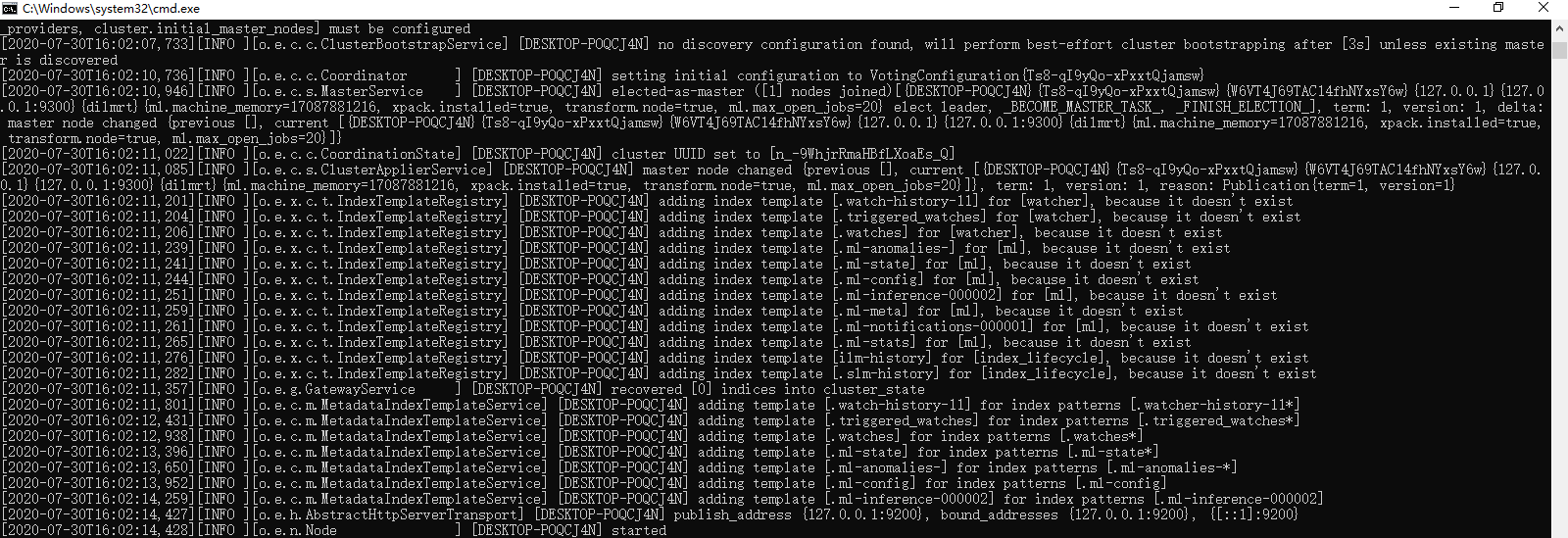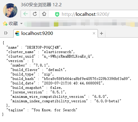 4、看到started说明启动成功,浏览器访问:http://localhost:9200