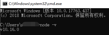 安装完成后 cmd 查看版本:node -v