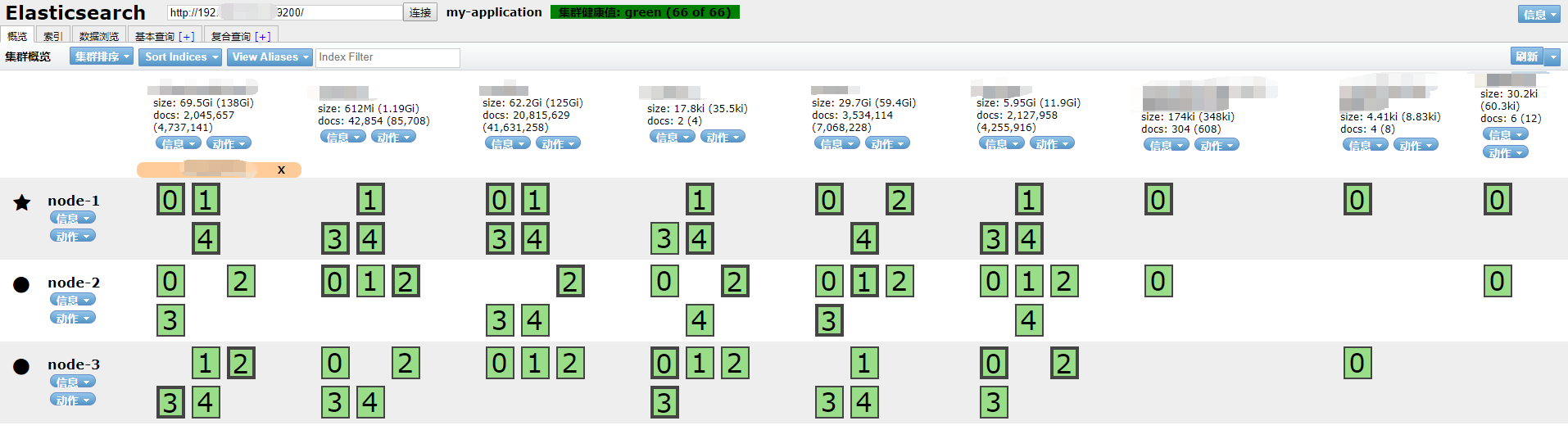 注:排除的索引监控信息将不会在 Kibana 控制台的 Montioring 页面(索引列表及索引监控信息页面)中显示。但是会在 GET _cat/indices 获取的索引列表中显示,并且可查看索引的状态是open还是close。