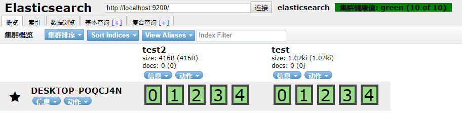7、修改完配置将es重启,浏览器访问:http://localhost:9100