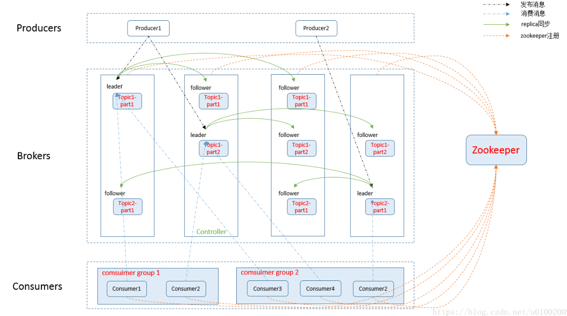 3、分布式系统,易于向外拓展。所有的Producer、broker和consumer都会有多个,均为分布式。无需停机即可拓展机器。