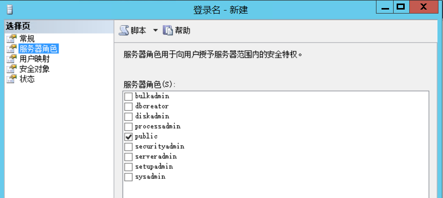 public:每个 SQL Server 登录名均属于 public 服务器角色