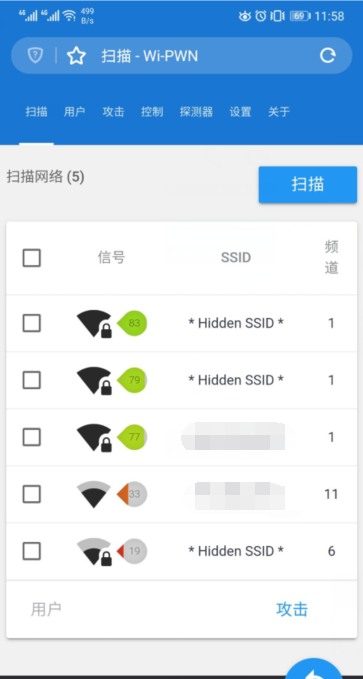 Deauth[解除设备认证攻击]:对链接到被攻击的AP所链接的所有客户端发送认证失败帧。