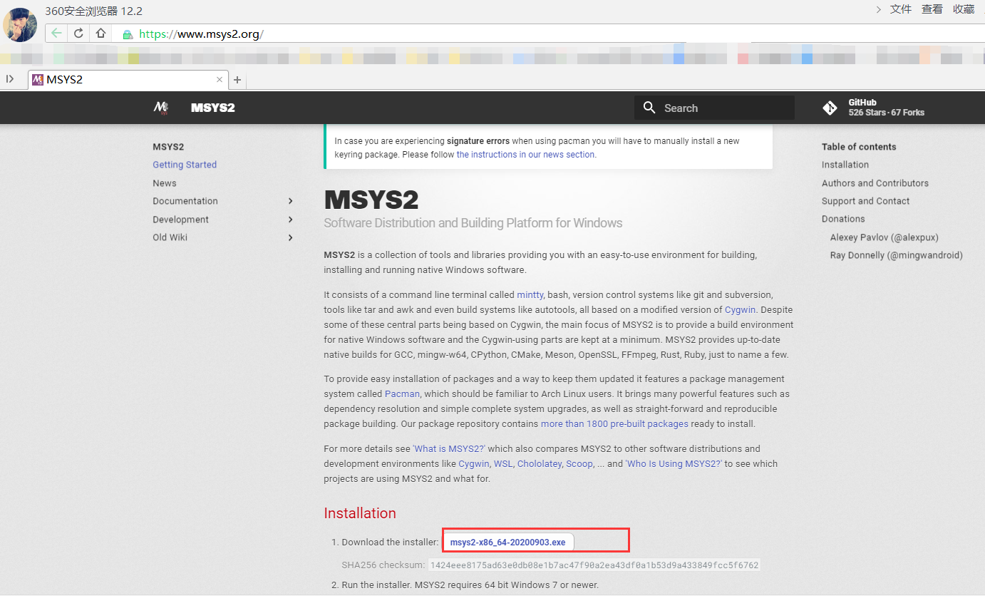 官网:https://www.msys2.org,进入该网址后,可以看到如下页面: