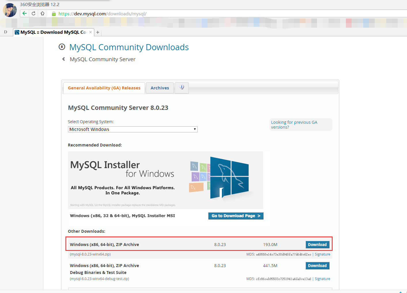 官网:https://dev.mysql.com/downloads/mysql/