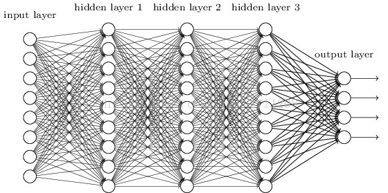 全连接DNN(见下图)的结构里下层神经元和所有上层神经元都能够形成连接,从而导致参数数量膨胀。