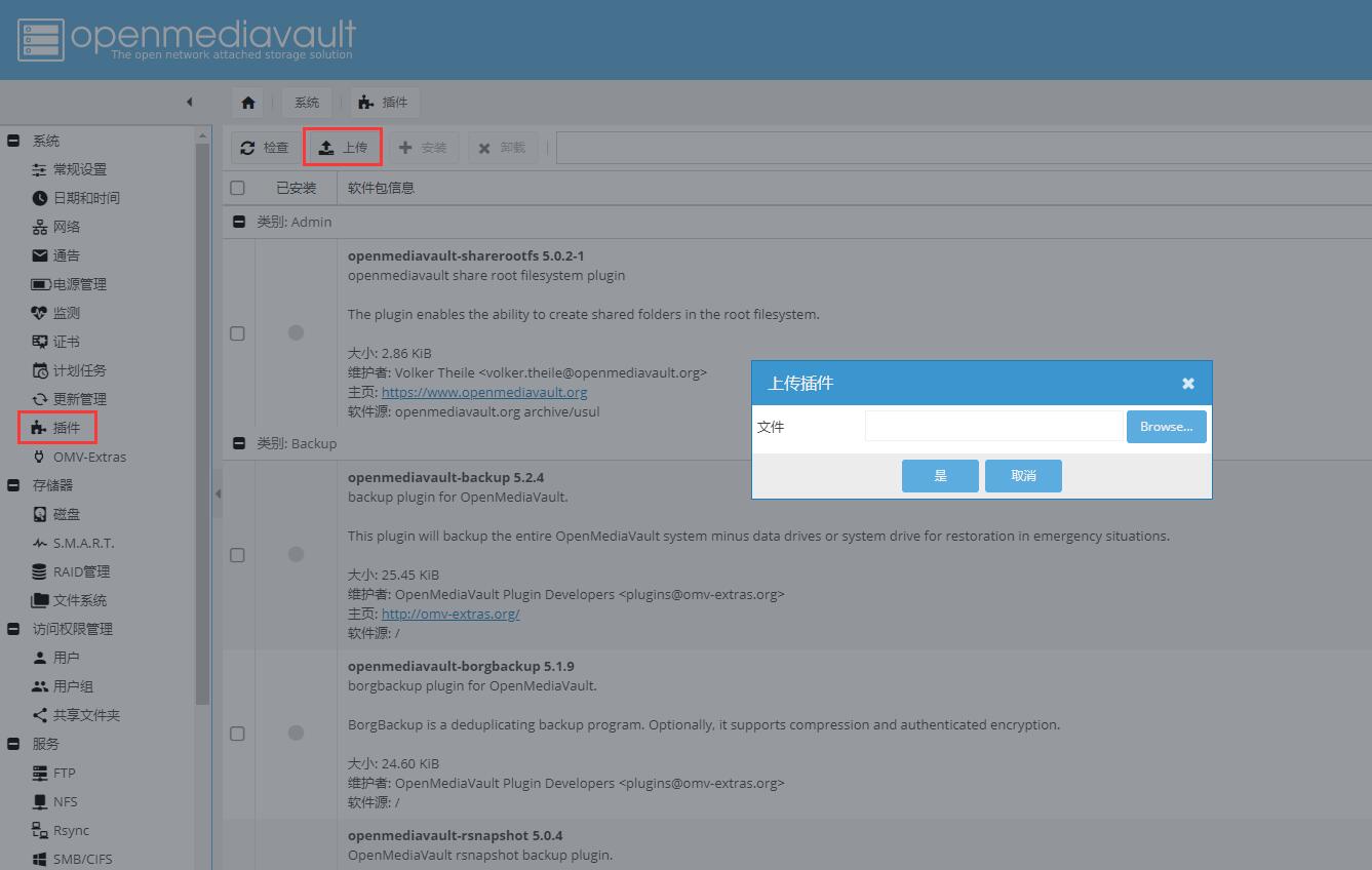 上传后到插件列表找到 omvextrasorg 进行安装。