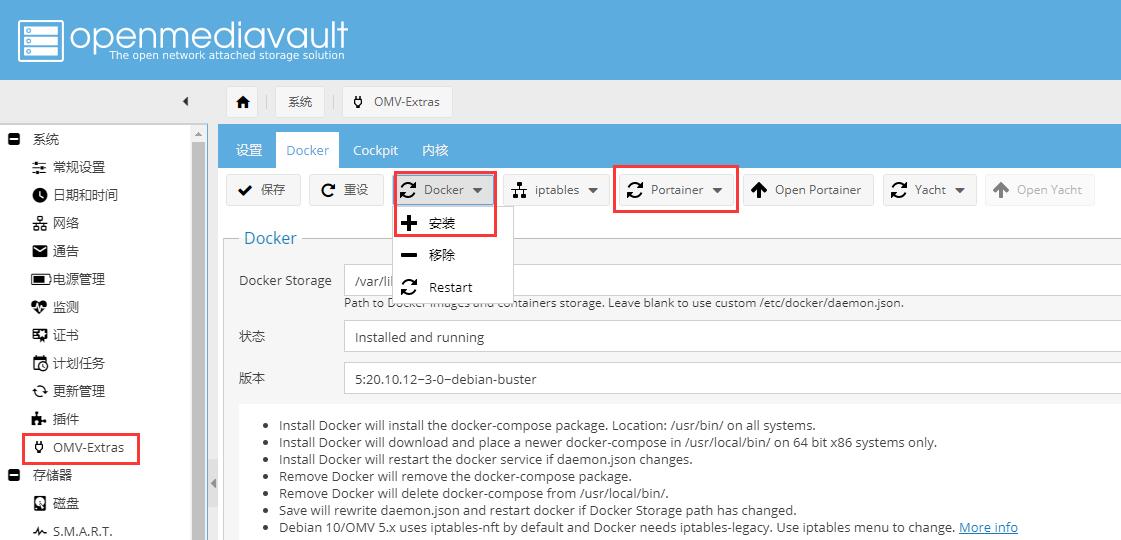 root 权限执行(详见:https://wiki.omv-extras.org):