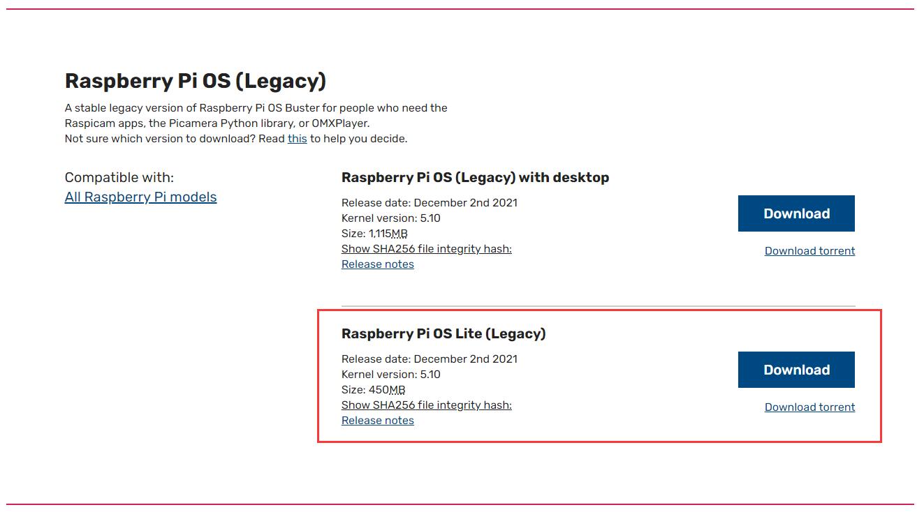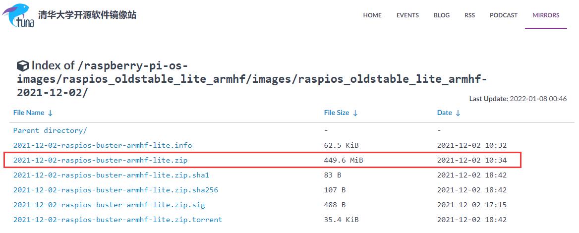 下载速度过慢的话也可以到清华镜像站下载,下载旧的稳定版:https://mirrors.tuna.tsinghua.edu.cn/raspberry-pi-os-images/raspios_oldstable_lite_armhf/images/raspios_oldstable_lite_armhf-2021-12-02/