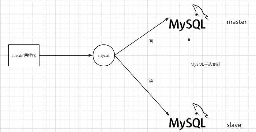 我们现在普遍的Java应用程序都是直接连接了MySQL 进行读写操作,也就是我们在Java中的配置文件等定义了MySQL的数据源,直接连接到了我们的MySQL服务,但是当某些情况下我们可能需要用到了多个数据库,这个时候我们可能就需要配多个数据源去连接我们的多个数据库,这个时候我们进行sql操作的时候就会很麻烦,因为Java与数据库有了一个紧密的耦合度,但是如果我们在Java应用程序与MySQL中间使用了mycat,我们只需要访问mycat就可以了,至于数据源等问题,mycat会直接帮我们搞定。